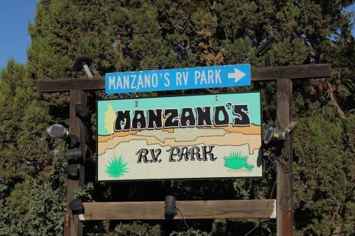 Manzano's RV Park provides 25 full-hookup RV sites. Each site includes a picnic table and a BBQ grill. The park sits at 5,900 feet elevation in pinion, juniper, and oak trees.