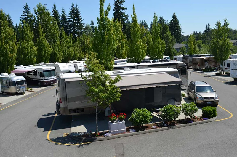 Maple Grove RV Park sits 30 minutes north of downtown Seattle off I-5. The park features maple tree-lined boulevards and 80+ full-hookup sites.