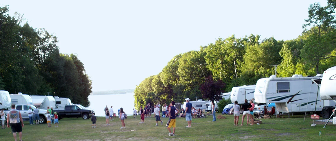 Merry Knoll Campground sits in the 1000 Islands region, 90 minutes from Syracuse. The park offers a 100-foot fishing pier and full-hookup sites in Clayton, New York.