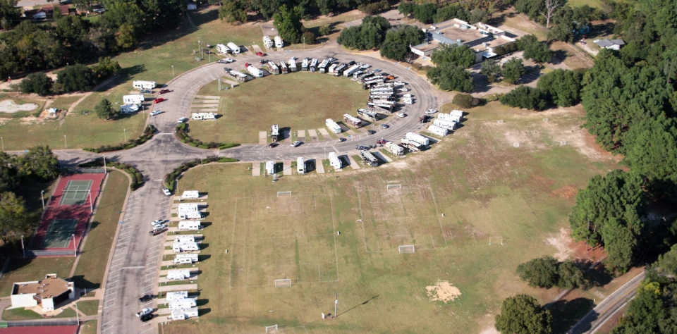 Mineola Civic Center RV Park is a rally-focused campground in Mineola, Texas, about 80 miles east of Dallas. This facility specializes in hosting large RV groups and events with its 22,000-square-foot convention center and over 200 full-hookup sites.