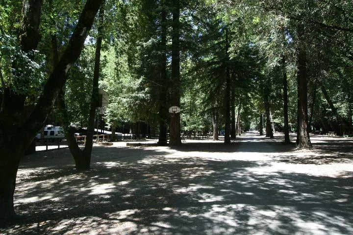Guests access the Russian River directly for swimming and kayaking. On-site recreation includes shuffleboard, basketball, and horseshoes. The park hosts family reunions, weddings, and concerts on its grounds.