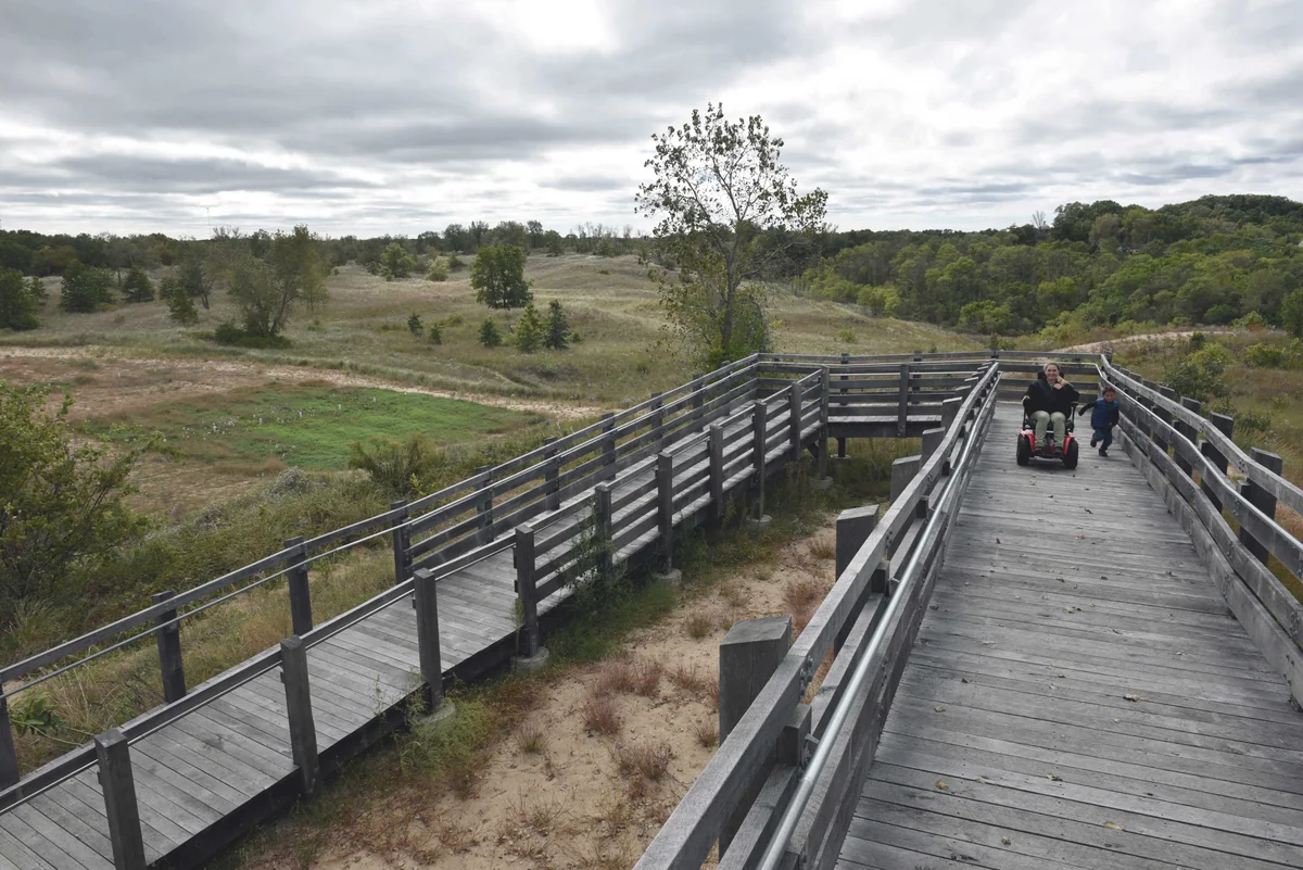 Mounds State Park provides two modern shower houses with flush toilets, a camp store, and a dump station. The park offers 10 hiking trails totaling 5.5 miles, a nature center, and multiple picnic shelters. A playground is located near the swimming pool, which is open Memorial Day through Labor Day for a separate admission fee.