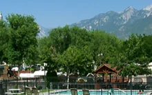 Guests at Mountain Shadows RV Park have access to a heated swimming pool, a hot tub, and a family park. The Draper location provides a base for hiking, mountain biking, and exploring the Wasatch Front.