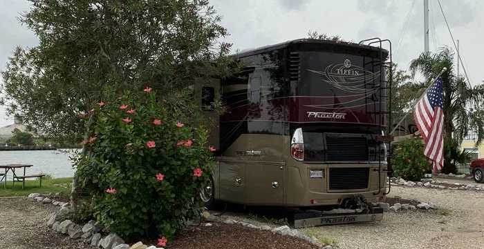 New Orleans RV Resort & Marina sits on Lake Pontchartrain, 12 minutes from the French Quarter. This gated resort combines RV camping with marina amenities.