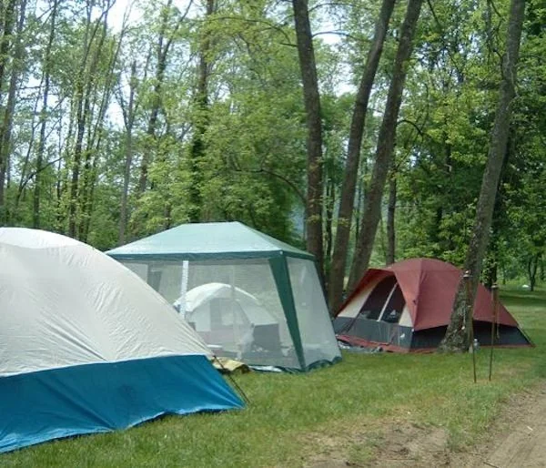 This seasonal campground operates from April through October. The property offers tent sites, cabin rentals, and event spaces. Groups and corporate retreats use the property for gatherings.