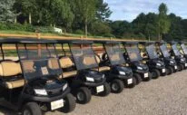 RV site rates vary by season and site type, ranging from $70 to $125 per night. Glamping rentals, such as A-frame cabins and yurts, range from $175 to $350 per night. Holiday weekends and weekly stays may require minimum nights. A golf cart rental costs $65 to $95 per day.