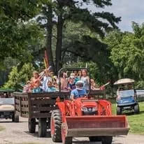 Kayaks, canoes, and paddleboards are available for on-site rental. The property includes wooded lots and a private sandy beach. Annual events include an oyster roast and campfire gatherings.