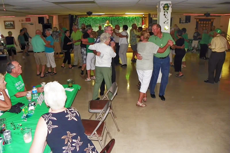 The Palm Gardens Activities Club defines the park experience. The club hosts Thursday night jams, exercise classes, and holiday dinners. Guests attend dances, crafts, and card games in Fiesta Hall.
