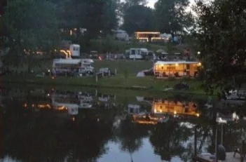 Paradise Lake Park occupies 160 acres surrounding a 25-acre spring-fed lake. The park offers 500 sites across wooded and open meadow areas. Sites accommodate big rigs with pull-through options.