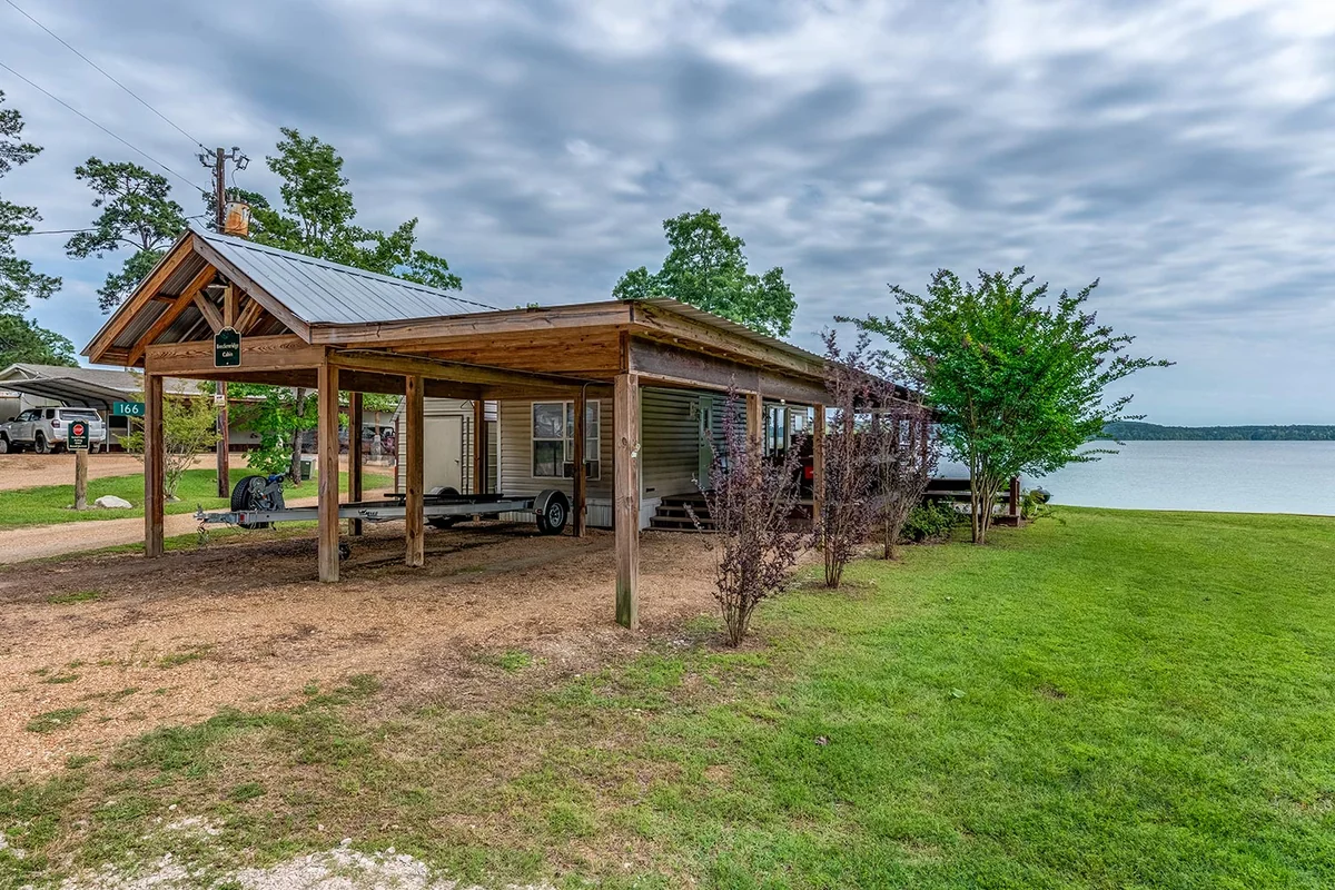 A private boat ramp gives tenants direct lake access. The marina offers covered boat slips for yearly rental. A fish cleaning station serves anglers returning from the lake.