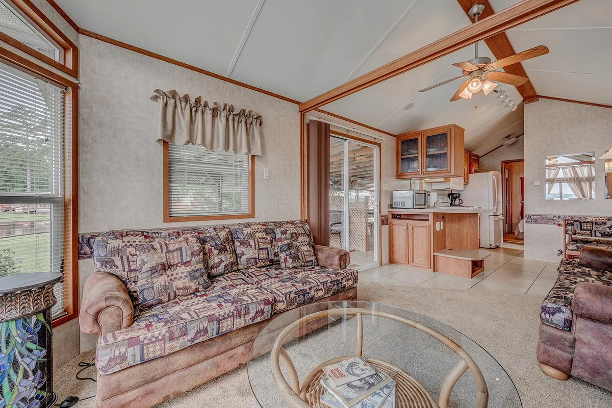 Seven cabin rentals accommodate guests without RVs. Advance reservations secure cabin availability. The park supports both short-term and long-term stays.