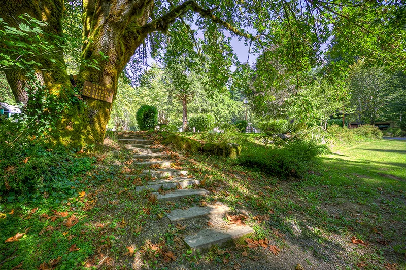 Patio RV Park lines the McKenzie River on nine acres. Each full-hookup site includes a covered carport and a private storage shed. The park provides cable TV and free WiFi at every site.