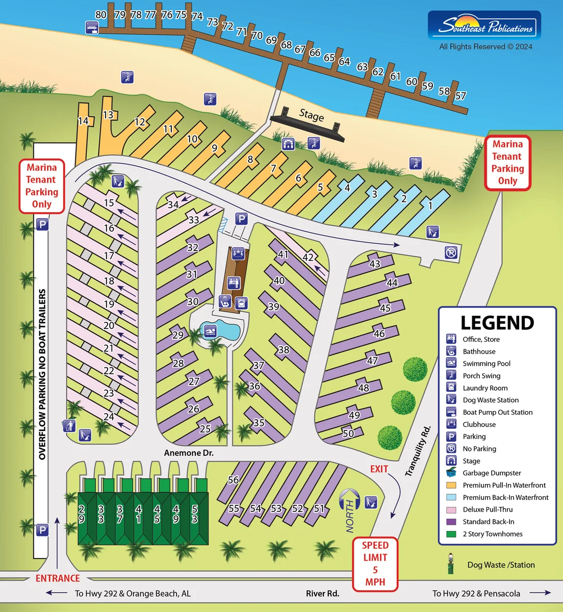Marketed as a family-friendly RV resort, it caters to travelers seeking a waterfront vacation with amenities for both RV and boat owners.