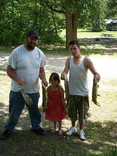Pine Acres Family Camping operates on Pelican Lake from spring through fall. The park provides boat slips, a launch ramp, and bait for anglers. Guests can rent kayaks, canoes, and paddle boats at the swimming beach.