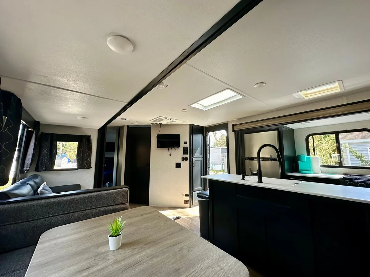The campground features Little Hooves Farm and organizes family fun activities throughout the season. Bike and grill rentals are available on-site for guest convenience.