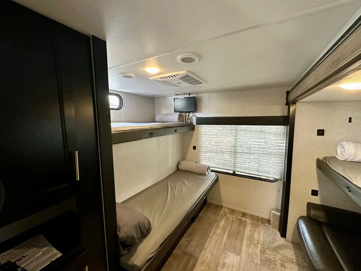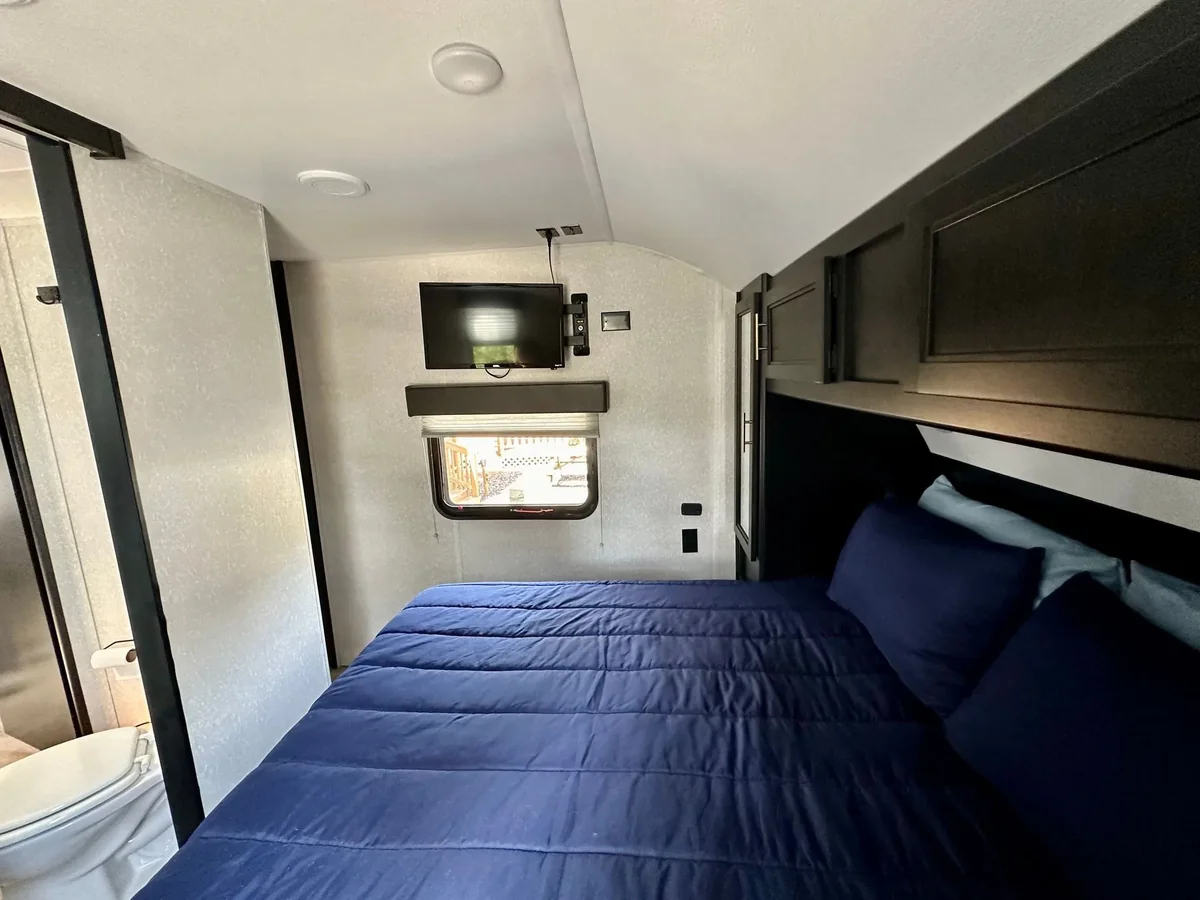 On-site amenities include bike rentals and grill rentals. Guests do not need to bring their own bicycles or grilling equipment. The campground features family activities and hosts events throughout the season.