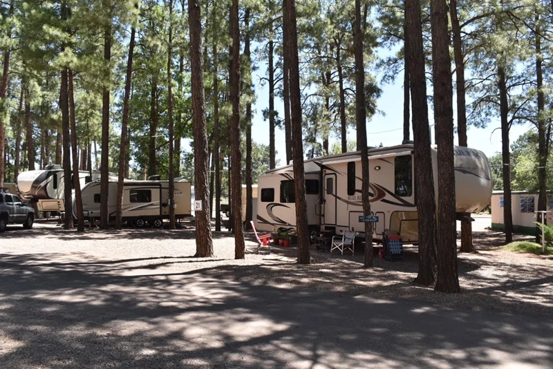 Ponderosa RV Resort is a 55+ community in the White Mountains of Arizona, a 3.5-hour drive northeast of Phoenix. This year-round park offers a temperate climate and serves as a summer retreat or a mild winter escape.