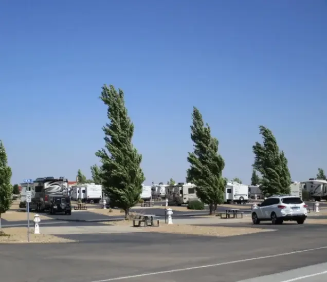 Guests enjoy the heated pool, shuffleboard, and horseshoes. The activity center schedules events, potlucks, and game nights. The resort's location offers easy access to desert hiking and off-road trails.