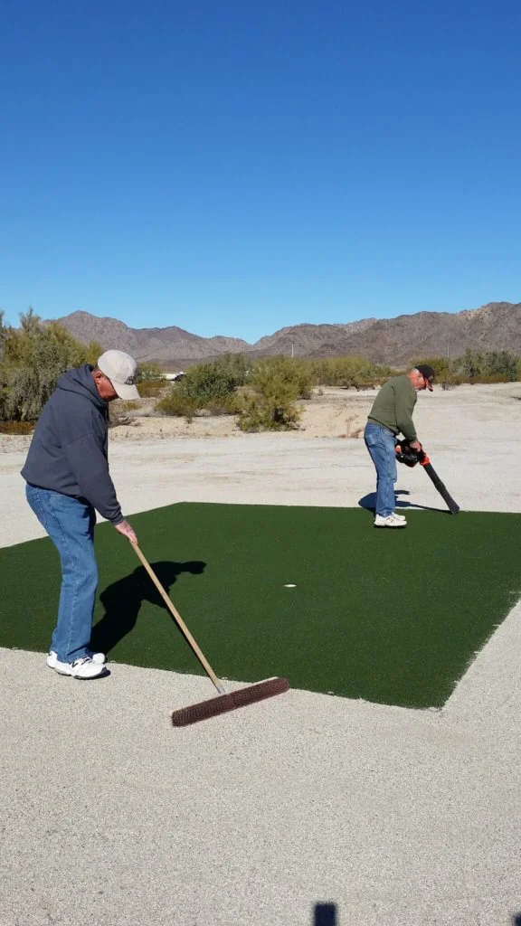 The park schedules weekly activities from October through April. Activities include Saturday breakfasts, Friday bonfires, bingo, golf tournaments, and craft sessions. The 18-hole desert golf course defines the park's recreational identity.