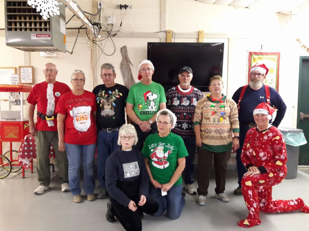 Scheduled activities include Saturday breakfasts, Friday night bonfires, bingo, golf tournaments, quilting, crafts, and monthly birthday and anniversary celebrations. The 18-hole desert golf course is open year-round.