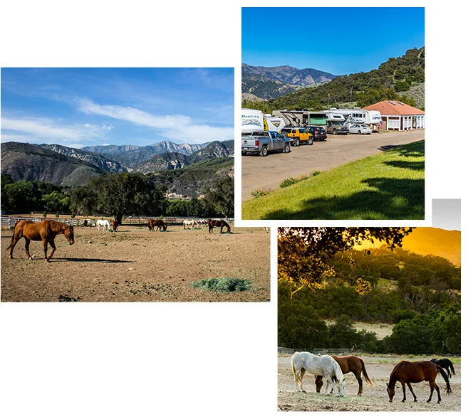 Rancho Oso RV & Camping Resort spans 310 acres of historic California landscape. The resort borders Los Padres National Forest and the Santa Ynez River. Guests board horses in covered corrals and ride on-site trails.