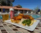 The Rio Bend Bar & Grill serves breakfast, lunch, and dinner Tuesday through Sunday. A snack bar operates inside the golf course pro shop. The resort sits 40 feet below sea level in the Imperial Valley.