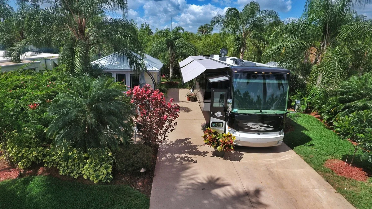 Riverbend Motorcoach Resort fronts the Caloosahatchee River on Florida's Intercoastal Waterway. The resort provides 315 full-hookup sites for Class A motorcoaches. Every site includes a reverse osmosis water purification system.
