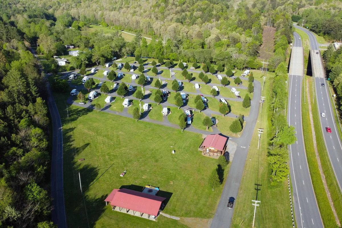 Rivers Edge Mountain RV Resort sits in the western North Carolina mountains near Murphy. Every site exceeds 5,000 square feet for big rigs.