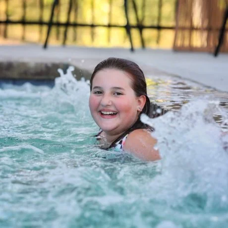 Onsite recreation includes a swimming pool, hot tub, cold plunge, walking trails, pickleball and basketball courts, a playground, and a community fire pit for social gatherings.
