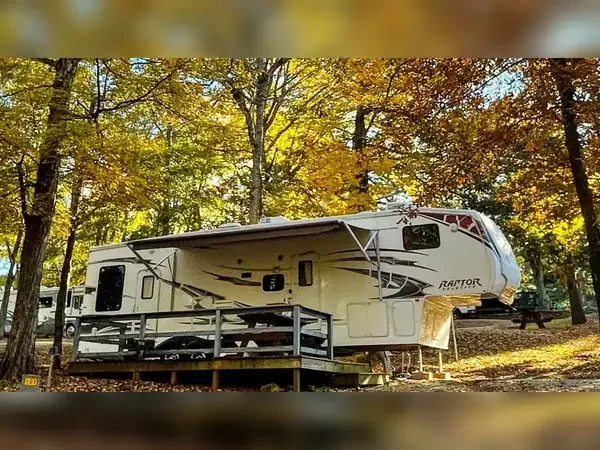 Reservations require Travel Resorts of America membership with booking windows based on membership tier. Check-in and check-out times vary by season and membership level. The resort accommodates RVs, travel trailers, fifth wheels, and pop-up campers.
