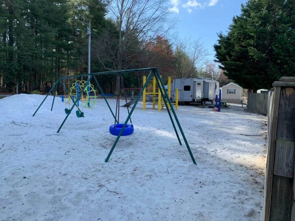 The park sits 15 miles south of Asheville and 10 miles north of Hendersonville. This location provides access to area attractions, beer and wine trails, and shopping. The park accepts pets including furry and feathered friends.