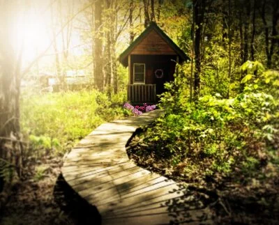 Art workshops and evening music events occur seasonally. The garden kitchen hosts shared meals for guests. The entrance off Route 1 accommodates RVs with wide approach and no tight turns.