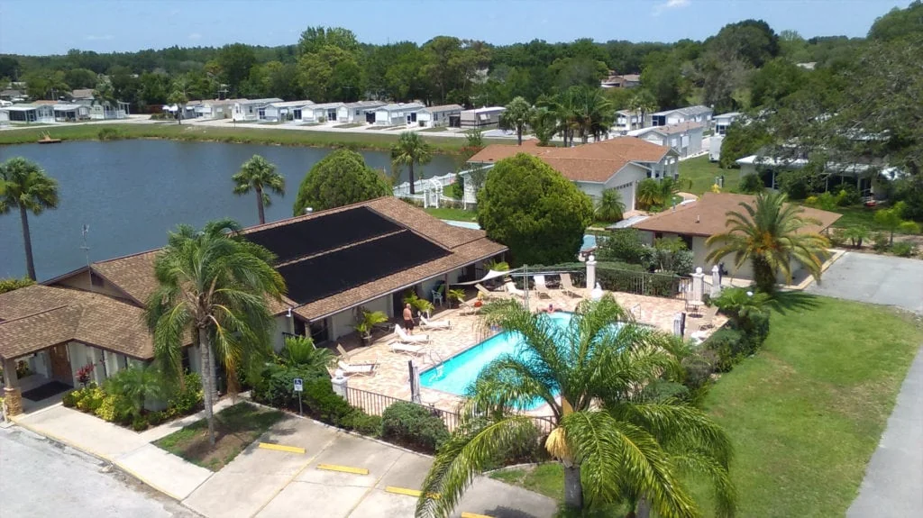 Seven Springs Travel Park is a 55+ gated RV community in New Port Richey, Florida, about a 40-minute drive from Tampa. This quiet suburban park features a solar heated swimming pool and planned activities.