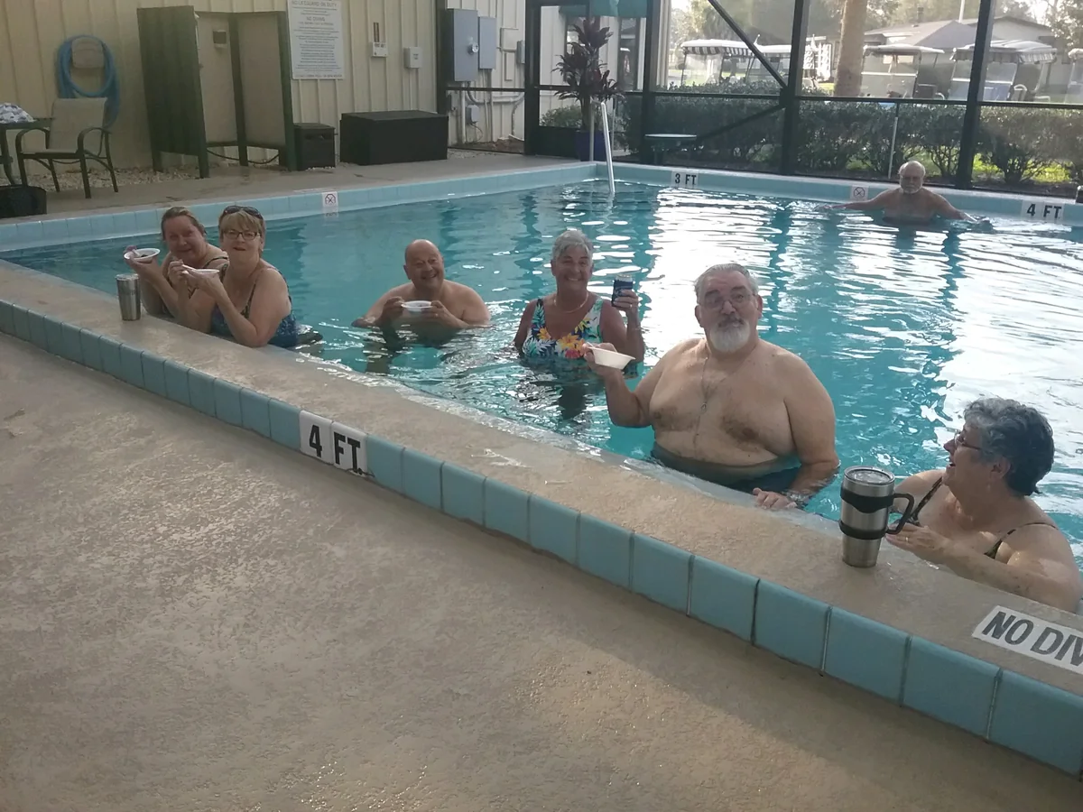 Shangri-la By The Lake offers a screened and heated swimming pool, hot tub, community building with kitchen and sunroom, boat ramp, and community docks.
