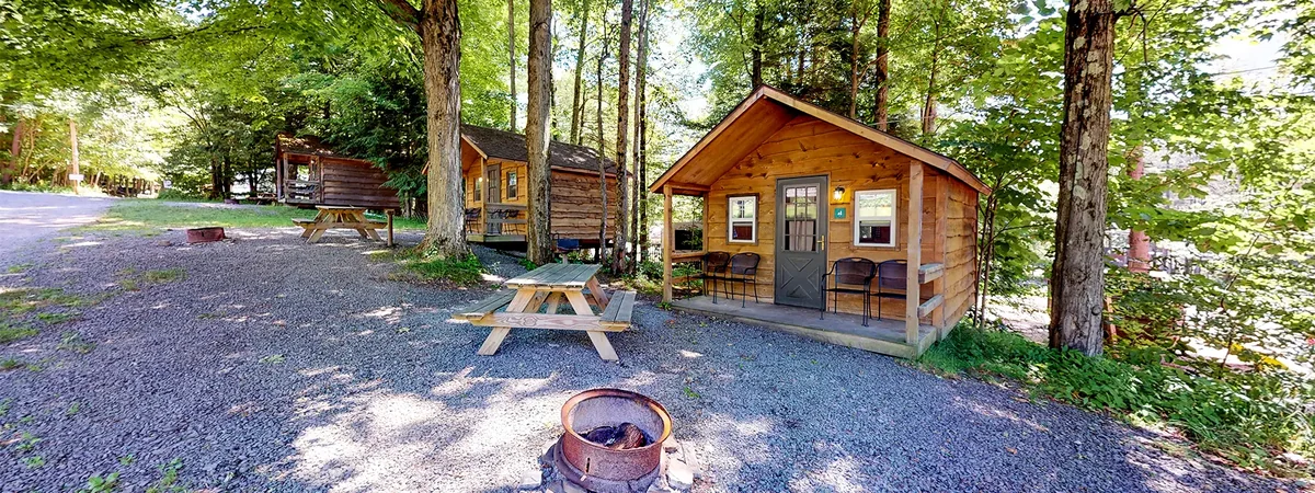 Six rental cabins provide beds, electricity, and heating. The campground hosts themed weekend events from April through August. Susquehanna County offers hiking trails and fishing streams in the Endless Mountains.
