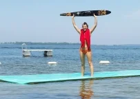 The resort provides a sandy swimming beach with a gradual entry. Guests use canoes, kayaks, and bicycles at no extra charge. The property connects directly to the paved Heartland and Paul Bunyan State Trails.