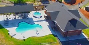 On-site amenities include a heated swimming pool and hot tub open seasonally, a clubhouse with kitchen and TV, free WiFi, clean restrooms with showers, a coin-operated laundry, and a propane refill station. The park also hosts regular community events.