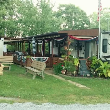 The campground maintains a pond for fishing. A Frisbee disc golf course provides on-site recreation. Lernerville Speedway sits 10 minutes from the campground.