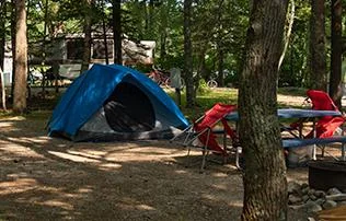Smuggler's Den Campground operates as a third-generation family business from May 22 through October 19. The park offers 100 wooded and sunny sites for tents, pop-up campers, and RVs. Full-hookup RV sites include 50/30/20-amp electrical service, water, and sewer connections on cement pads.