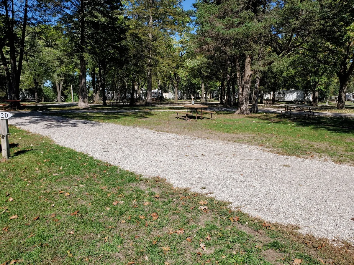 Each RV site includes a picnic table and fire pit. The park sits 8 miles west of St. Cloud, Minnesota. This location provides easy access to the St. Cloud metropolitan area.