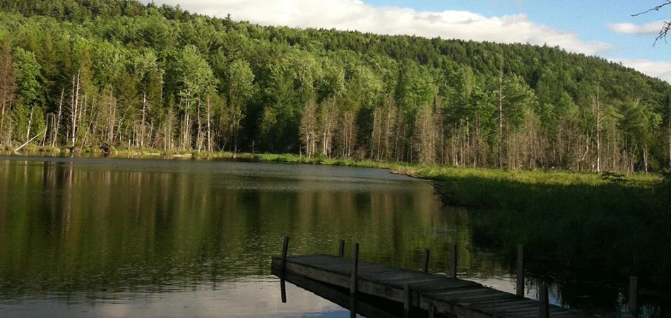 Tin Teepe Family Campground is a 125-acre Adirondack retreat in Brant Lake, New York, about a 30-minute drive north of Lake George. This privately owned campground features a 40-acre pond, miles of hiking trails, and 75 full-hookup sites for RVs and tents.