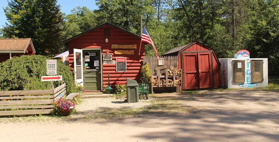 Twin Oaks Campground includes a camp store stocked with basic groceries, camping supplies, firewood, and ice. The property features a playground, picnic areas, and a communal fire ring. Canoe and kayak rentals are available on-site for Pine River excursions.