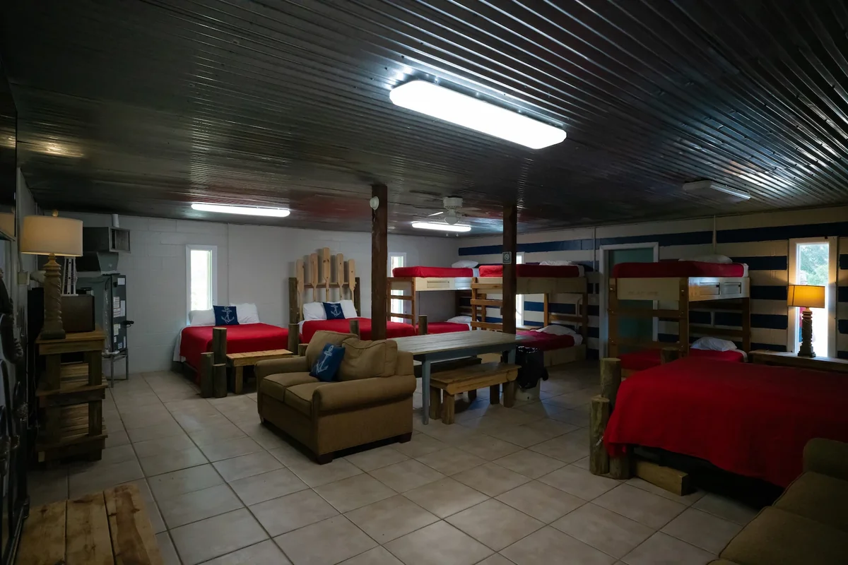 RV sites include full hookups for extended stays. Primitive tent camping and cabin rentals offer alternative lodging. The resort attracts divers, snorkelers, and families year-round.
