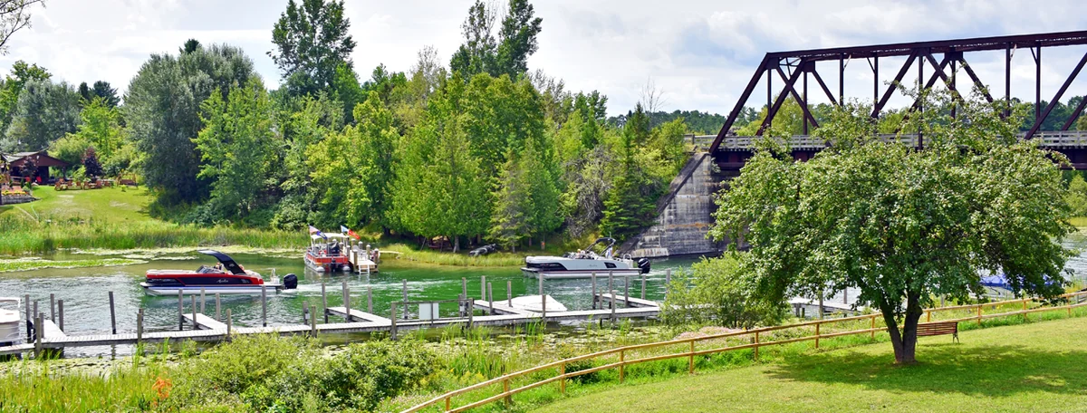 Waterways Campground sits on the Cheboygan River in Cheboygan, Michigan, 20 miles south of the Mackinac Bridge. This family-friendly park unites camping and boating with a private boat launch and dock.