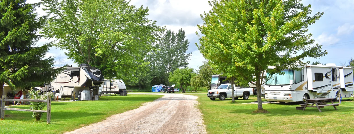 Downtown Cheboygan is 5 miles from the campground. Mackinaw City is 20 miles away. Mackinac Island ferry docks are 25 miles from the park.