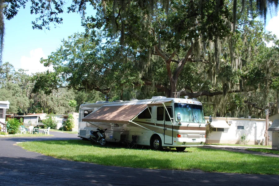 West Bay Mobile Home & RV Park is a 55+ active adult community in Largo, Florida, just south of Clearwater. The park features a wooded setting with giant live oak trees and full-hookup RV sites.