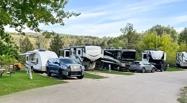 Whistler Gulch Campground sits on Highway 85 South in Deadwood. The park lies 45 miles northwest of Rapid City. Nightly RV rates start at $70.
