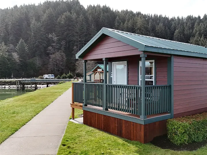Winchester Bay RV Resort places every site on Salmon Harbor or the Umpqua River. Each site protects picnic areas from ocean breezes. Two vacation cabins provide non-RV camping options.