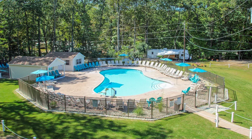Witch Meadow Lake Campground is a family-oriented park with a schedule of seasonal events and organized sports. The adult lounge offers a dedicated space for guests.