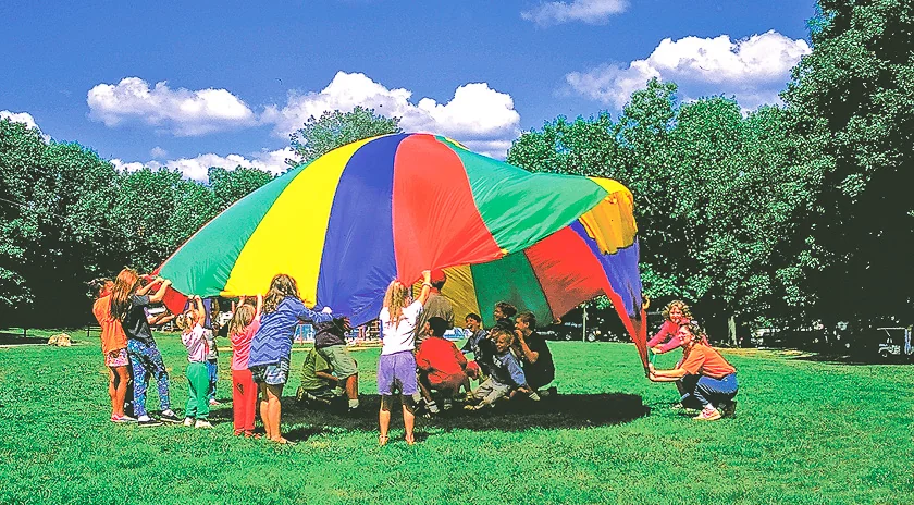 Land activities include tennis, pickleball, basketball, volleyball, softball, and kickball. The park offers T-ball, soccer, shuffleboard, badminton, horseshoes, disc golf, and cornhole. Seasonal events and organized sports create a community atmosphere for families.